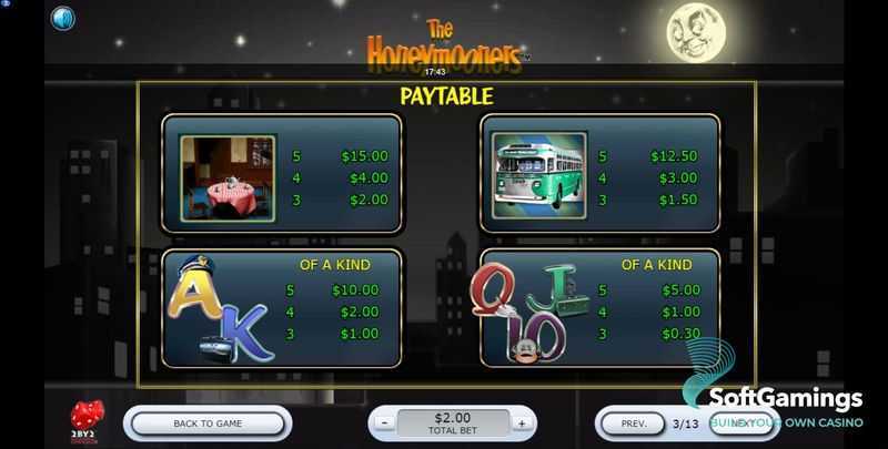 With 20 paylines, The Honeymooners provides a moderate number of winning combinations in comparison to other slots with higher counts. This structure typically offers players a balanced blend of winning possibilities, resulting in both frequent small wins and the potential for larger payouts.