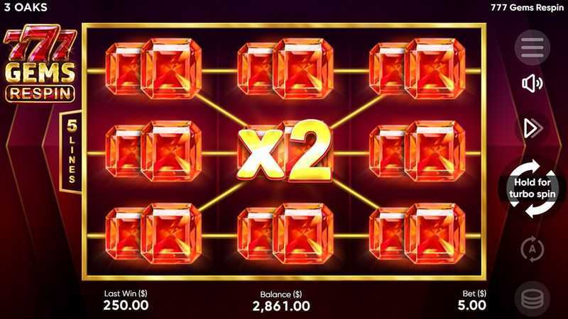 The volatility is listed as Unknown, which hinders a precise evaluation of risk associated with the game. However, with only 5 paylines, lower stakes can yield less frequent payouts but the potential for larger wins. As a result, players should approach 777 Gems Respin with caution, balancing between low-risk sessions and higher bets when comfortable.