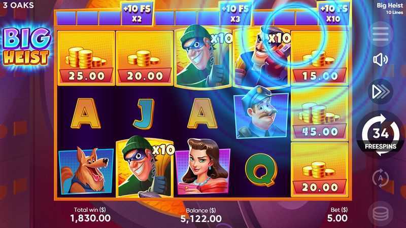 The high volatility of Big Heist suggests that while this slot may offer the potential for substantial payouts, players should be prepared for long stretches without wins or minimal payouts. The fixed structure of 10 paylines may mean fewer combinations compared to slots with more complex ways to win. Thus, the risk associated with playing could be classified as significant, necessitating strict bankroll management and a well-considered playing strategy.