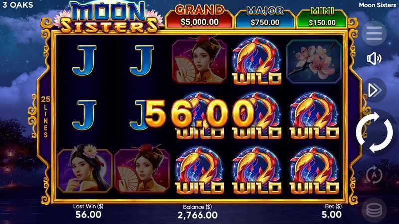Moon Sisters is classified under "Medium" volatility, suggesting a balanced gameplay experience that combines frequent small wins with the potential for larger, less frequent payouts. The 25 paylines ensure that while the potential for hitting winning combinations exists regularly, the volatility indicates players may face periods of dry spells, followed by substantial wins once bonuses or multipliers activate. Players should prepare for potential swings in their bankroll and adapt their betting strategy accordingly.