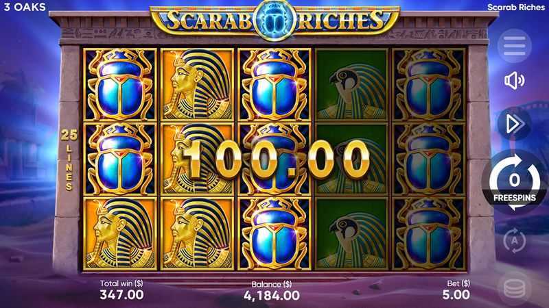 With 25 fixed paylines, Scarab Riches offers a structured approach to winning combinations. This fixed structure often leads to predictable payout patterns but can also mean that wins are less frequent compared to slots with higher paylines or dynamic "ways to win."