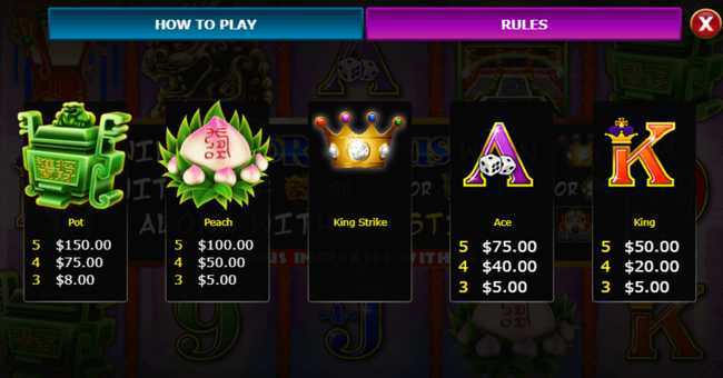 With a fixed structure of 30 paylines, Jade Emperor offers a set number of winning combinations for each spin. This means that while the player can achieve wins, they may be relatively less frequent compared to slots with higher paylines or a varying "ways to win" mechanic. The fixed paylines may mean that players need to hit specific combinations to secure a payout, which could translate into higher volatility in terms of wins.
