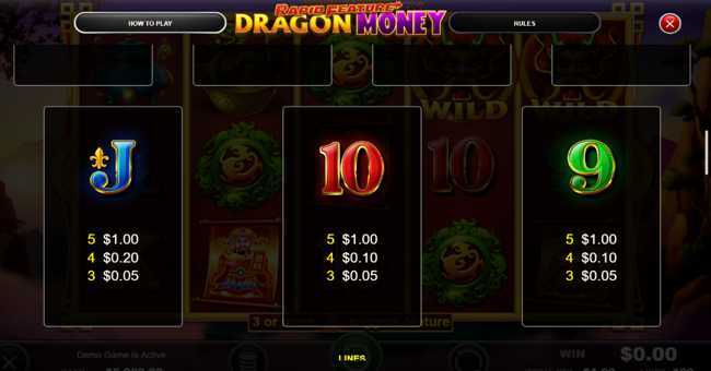 With 100 paylines, Rapid Feature Dragon Money provides a balanced approach to winning combinations. This moderate number allows for decent opportunities to secure small to medium wins regularly. However, the total number of lines indicates that players may need to wager more frequently to hit larger payouts effectively.