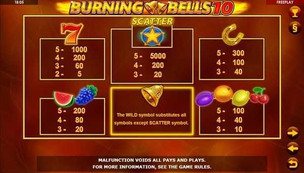 Burning Bells 10 features 10 fixed paylines. This structured format generally allows for a steady stream of payouts, though not as extensive as slots with many more paylines. Players can anticipate a consistent experience with the possibility of smaller, more frequent wins, albeit with potentially limited big win opportunities compared to games with higher variability.