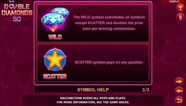 With a volatility rating described as medium-high, the risk level associated with Double Diamonds 50 is notable. Players can expect larger swings in their bankroll due to potential high win amounts interspersed with periods of breaks. The structured nature of 50 paylines provides more chances to win but does not prevent the possibility of large swings typical in medium-high volatility slots.