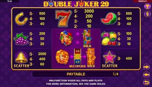 The Return to Player (RTP) for Double Joker 20 is set at 97.08%, meaning, on average, a player can expect to receive back 97.08 coins for every 100 wagered. This RTP is considered high, providing a favorable edge for the player compared to many other slots, which typically average around 96%. This theoretically offers better chances for recovering bets over extended play sessions.