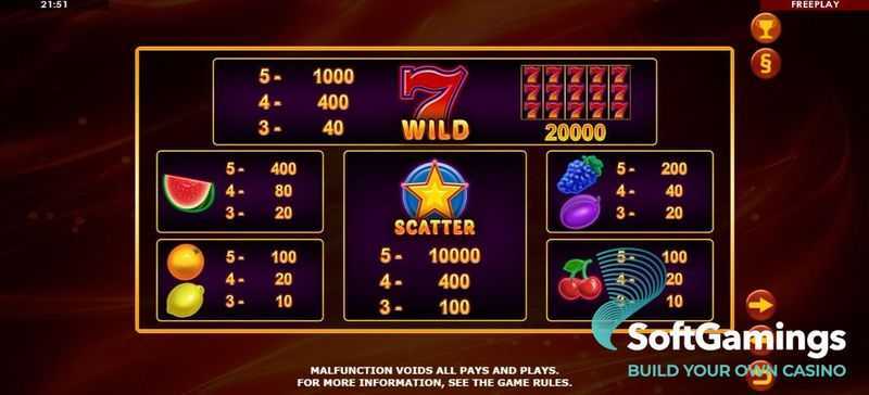 With 40 paylines, Fiery Fruits offers a structured approach to wagering, providing multiple opportunities for wins on each spin. This fixed payline structure can help players strategize their bets and gives a clear understanding of winning combinations.