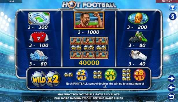 With only 5 paylines, "Hot Football" offers limited winning combinations compared to slots that utilize more extensive payline mechanics. This generally suggests that wins may be less frequent, and players should be prepared for longer dry spells in terms of payouts. However, the simplicity of the payline structure can attract players looking for straightforward gameplay.