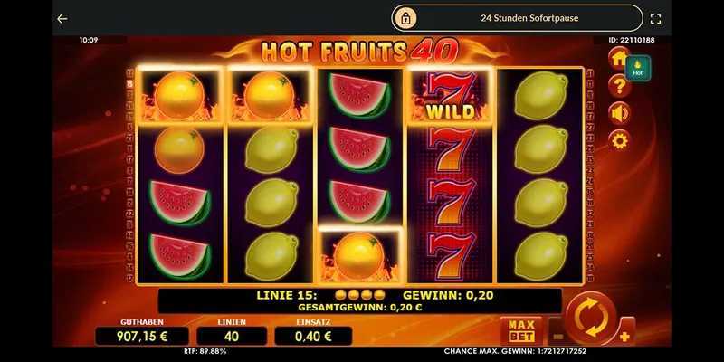 With 40 paylines, Hottest Fruits 40 offers a structured approach to winning combinations. This number of paylines allows for a decent balance between potential payouts and the frequency with which players may win. The combination of a 5x4 grid paired with these paylines means that players can expect consistent small to medium wins, with opportunities for larger wins on luckier spins.