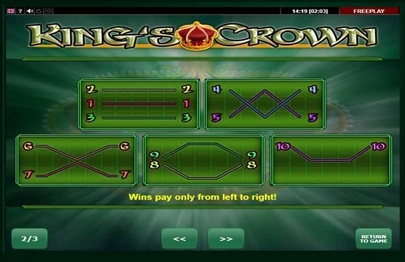 With 10 paylines, Kings Crown provides a structured approach to winning combinations. This means players win when they align symbols along these fixed lines, leading to a somewhat controlled variance in winning outcomes. Since there are only 10 paylines, the frequency of wins may be lower than those seen in slots with higher payline counts, but each win could potentially be more impactful.