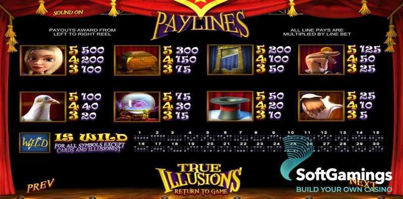 With 30 paylines, True Illusions offers a structured format for winning combinations. This implies that players can experience a moderate frequency of payouts, though the number of ways to win is not as extensive as games with higher paylines. The medium volatility suggests that wins will typically occur periodically, with an average potential for both moderate and larger wins.