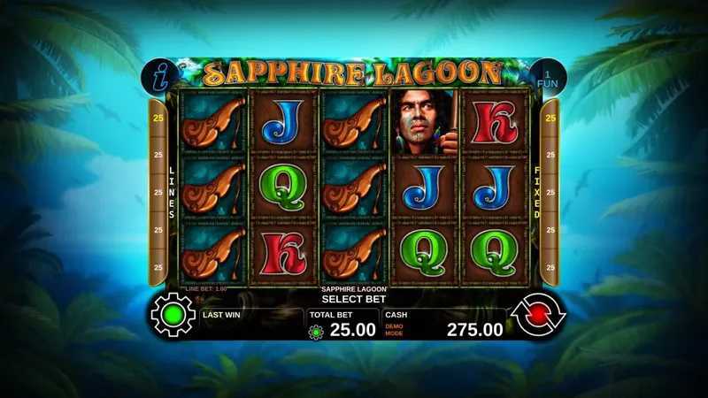 Sapphire Lagoon features a traditional grid layout of 5 reels and 3 rows. This standard format indicates a moderate frequency of winning combinations, generally providing balanced gameplay and a familiar experience for players. Coupled with the 25 paylines, players have multiple opportunities to win on each spin.