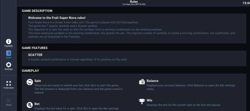 Fruit Nova utilizes a straightforward structure with only 5 paylines. This limited number of paylines suggests that wins may be less frequent compared to slots featuring a larger number of winning combinations. While a lower count can offer more predictable outcomes, it may also lead to prolonged periods with no significant wins.