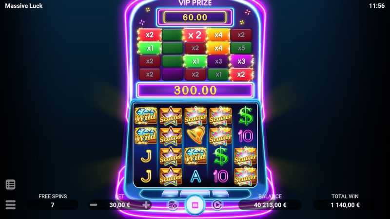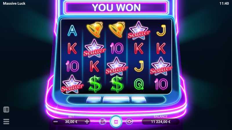 Massive Luck features a 5-reel and 4-row grid combined with 40 paylines. This structure promotes multiple ways to win on each spin, with winning combinations occurring often, albeit typically yielding smaller wins. The presence of high volatility suggests that while frequent small wins may occur, larger wins will be more sporadic, leading to potential risk for players betting high.