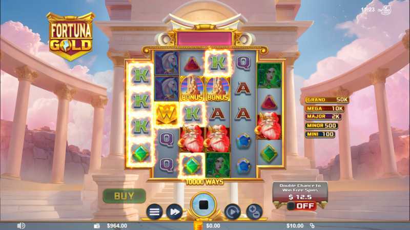 With a staggering 10,000 paylines, Fortuna Gold employs a high "ways to win" mechanic, increasing the chances of landing winning combinations. This extensive number can lead to more frequent, albeit potentially smaller, wins throughout gameplay.