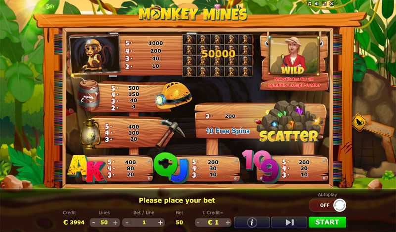 With 50 paylines available, Monkey Mines provides a fair number of winning combinations per spin. This structure suggests a balanced opportunity for wins — not overly generous, but sufficient to keep the gameplay engaging. Each payline can provide a potential win per spin, contributing to frequent payout opportunities within the game.