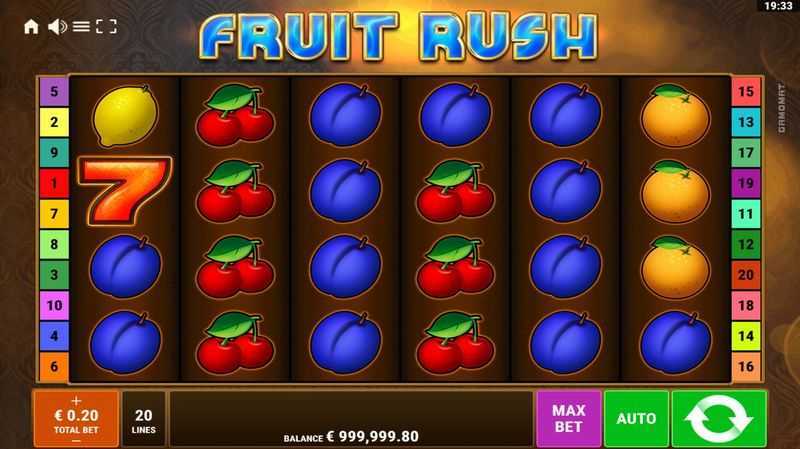Fruit Rush operates with a structure of 20 paylines. This allows for a moderate number of winning combinations as players spin the reels. While the number of paylines is not excessively high, this setup ensures that wins may occur at regular intervals, suitable for players looking for a balance between risk and reward.