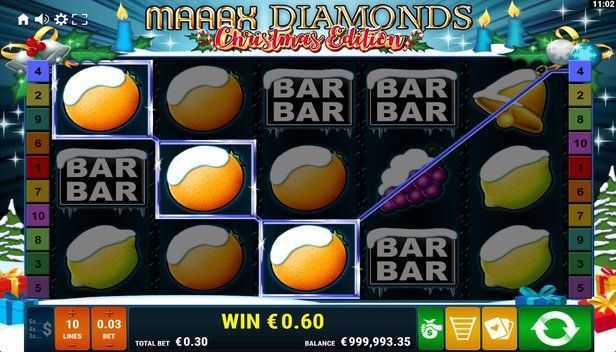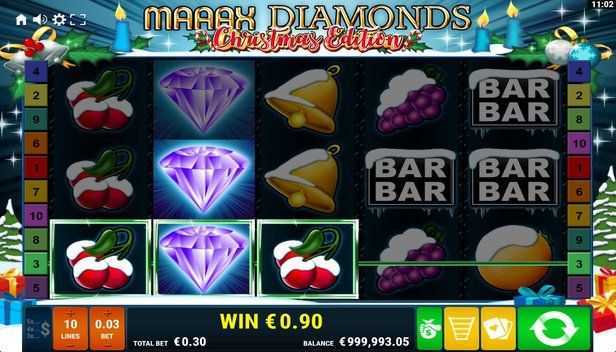 Maaax Diamonds Christmas Edition features 10 fixed paylines. This relatively limited number of paylines often leads to fewer but potentially more substantial wins per spin compared to slots with a higher number of paylines. Players may experience intervals of dry spins due to the fewer winning combinations available, which can lead to a degree of frustration if wins are not forthcoming.