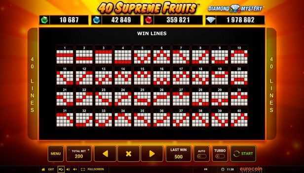 With 40 fixed paylines, 40 Supreme Fruits offers a moderately structured way of winning. This allows players multiple opportunities to form winning combinations on each spin. The fixed paylines ensure that players are aware of the exact configurations needed for wins, contrasting with slot games that use "ways to win" mechanics, which can result in more variability but often smaller payouts.