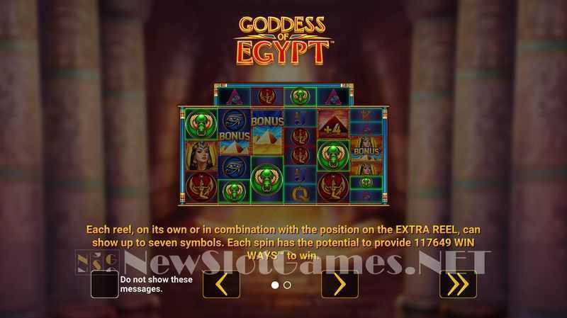 The Goddess of Egypt slot utilizes a "ways to win" mechanic, providing a staggering 117,649 ways to form winning combinations. This structure suggests a high potential for winning combinations on any given spin, leading to more frequent, albeit possibly smaller, payouts. As the volatility is categorized as medium, players can expect a balanced mix of wins and losses, making this slot suitable for both casual players and more seasoned gamblers.