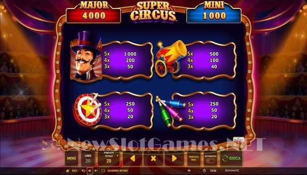 Super Circus features a fixed structure of 20 paylines. This relatively moderate number allows for a balanced experience, where players can expect a workable variety of winning combinations. Unlike slots with numerous paylines, which can lead to frequent smaller wins, Super Circus may provide larger hits, but with each payline relying on the player landing specific symbol combinations to secure wins.