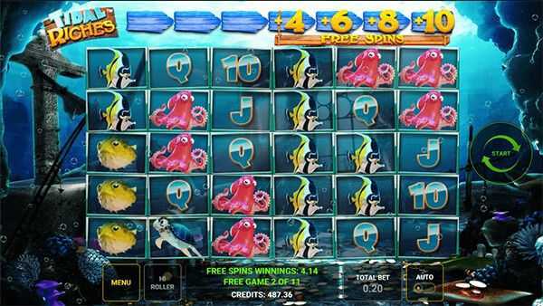 With 20 paylines, Tidal Riches offers a moderate structure for forming winning combinations. This number of paylines allows for a good balance between frequent wins, albeit typically of smaller values, while also offering larger win opportunities, particularly when accounting for the volatility.