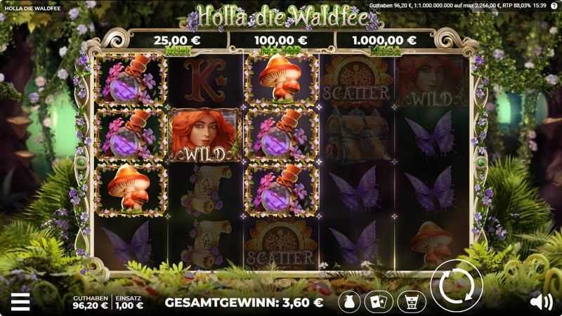 Given that "Holla die Waldfee" features high volatility, players can expect substantial swings in their bankrolls, with potential for both large wins and lengthy dry spells. The limited number of 25 paylines contrasts with the higher risks associated with the volatility, suggesting that winning spins may yield smaller payouts, adding to the variability.