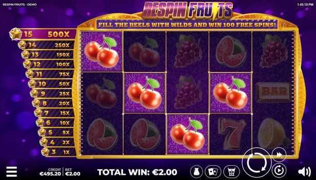 Respin Fruits features 10 paylines, indicating a more classic slot structure. This may lead to lower combinations and wins compared to modern slots with thousands of ways to win. However, the limited paylines could imply that while wins may be less frequent, they may potentially be higher, depending on the symbols' value.