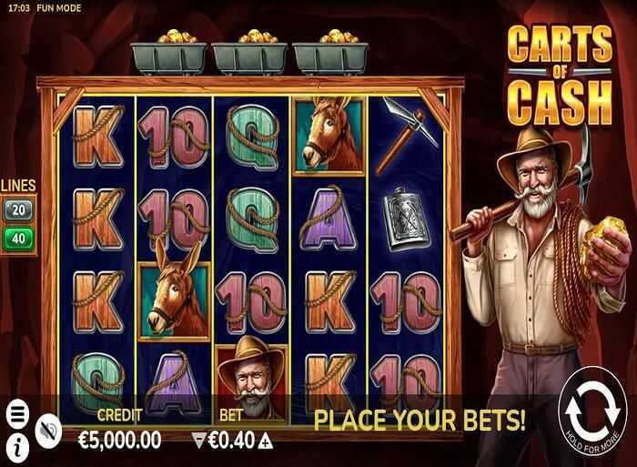 Carts of Cash features 40 fixed paylines, allowing for conventional winning combinations. This structure generally indicates decent opportunities for consistent payouts, favoring players looking for a balance between frequency and size of wins.