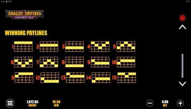 With a total of 40 paylines, Dragon Empires Golden Age offers a good number of winning combinations. Such a structure typically results in a balance between frequency and size of wins, allowing players to hit moderate wins fairly often while still providing opportunities for larger payouts.