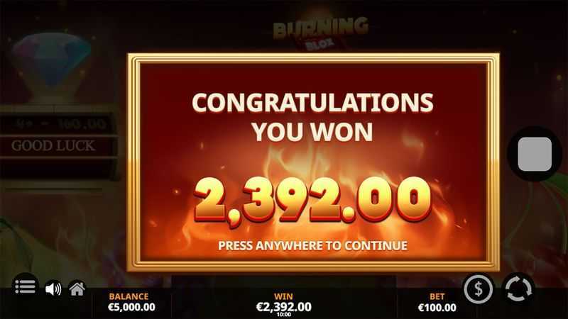 With 20 paylines, Burning Blox Gigablox utilizes a classic fixed-payline structure. The presence of a moderate number of paylines suggests that while players may encounter winning combinations more frequently, the payouts may tend to be smaller.