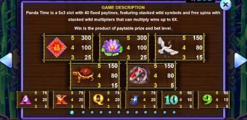 With Panda Time being classified as having medium volatility, players can anticipate a balanced mix of wins, involving both smaller payouts and occasional moderate wins. The structure with 40 paylines coupled with the medium volatility suggests a fairly steady flow of returns, making it appealing for those who want to play longer sessions without extreme risk.