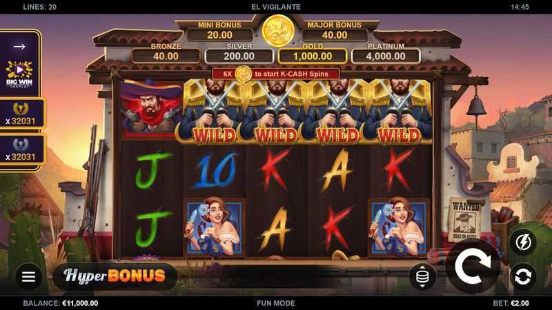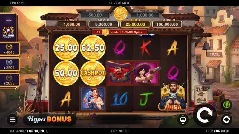 El Vigilante utilizes a 5-reel, 3-row grid and has 20 fixed paylines. This setup offers a balanced mix of opportunities for wins, as players have multiple ways to form winning combinations. However, the medium number of paylines indicates that players can expect a moderate number of hits during gameplay, rather than an excessively high frequency of payouts.