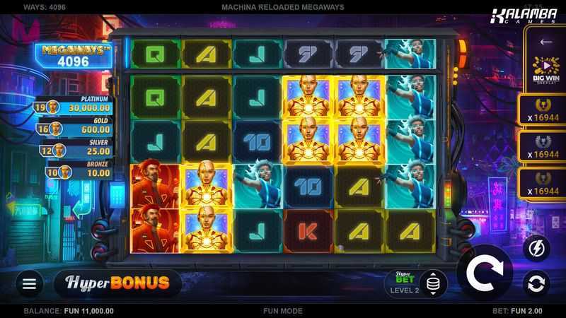 With a substantial 117,649 ways to win, Machina Reloaded Megaways employs a "Megaways" mechanic that offers extensive winning combinations rather than fixed paylines. The high number of ways to win enables frequent, albeit potentially smaller, payouts compared to slots with fixed paylines, making the gameplay dynamic and exciting.