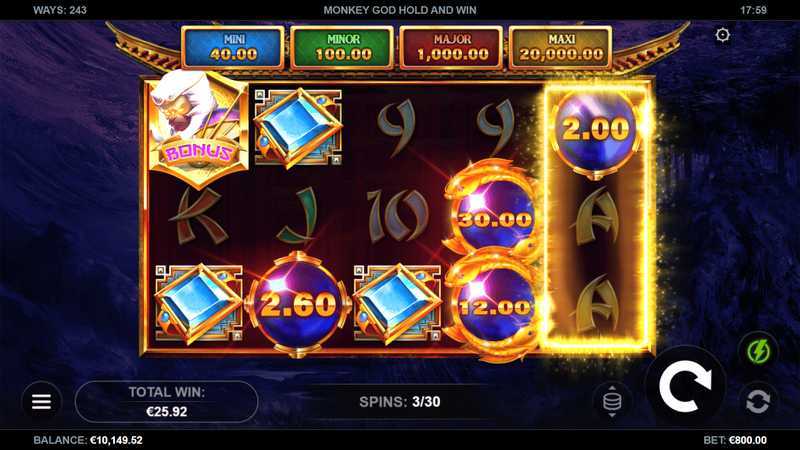 Monkey God presents a medium-high volatility rating, suggesting that while wins may be less frequent, potential payouts can be significant when they occur. The combination of 243 paylines also offers greater opportunities for wins than traditional fixed-payline slots, though it may lead to larger swings in balance over time. As a professional player, one would need to be prepared for longer dry spells, balanced by the potential for substantial payouts.