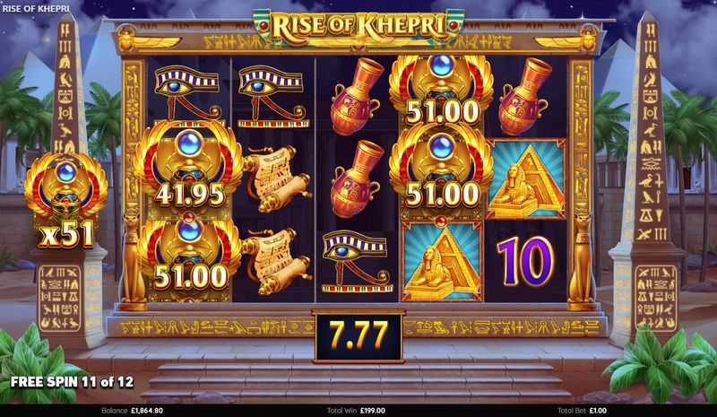 With 243 paylines, "Rise of Khepri" employs a "ways to win" structure, effectively increasing the chances of landing winning combinations. This model typically results in more frequent but potentially smaller wins, aligning well with the game's medium volatility.