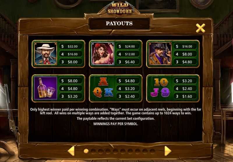 Wild Showdown features 1024 paylines, allowing for many possible winning combinations. Such a large number of paylines tends to facilitate more frequent wins, albeit smaller in size compared to slots with larger maximum payouts. This structure may attract players who enjoy seeing their wagers returned more often, but with lower win amounts on average.