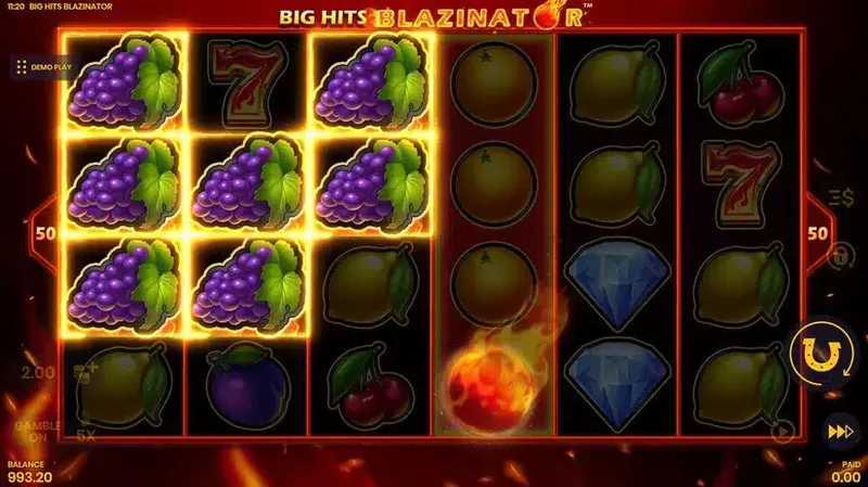Big Hits Blazinator has a medium volatility rating, suggesting a balanced risk-reward dynamic. Players can expect a mix of smaller, more frequent wins due to the 50 paylines while also having the potential for larger payouts. The grid structure of 6-4 provides ample opportunities for winning combinations, but players should remain mindful of volatility, ensuring they manage their bankrolls appropriately.