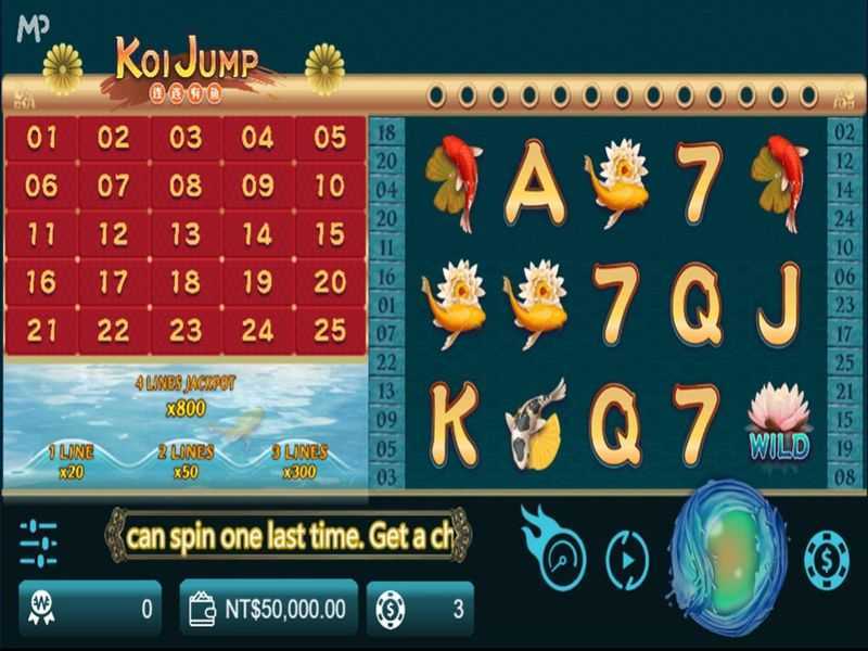 Koi Jump features a total of 25 paylines. This structured paylines system offers a fair number of opportunities for winning combinations. While not excessively high, it allows for relatively consistent payouts and can cater to different betting strategies, thus appealing to both casual players and those pursuing bigger wins.