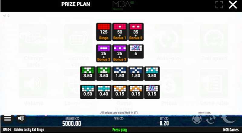 With volatility not explicitly stated, players should approach Golden Lucky Cat Bingo with caution. The fixed 15 paylines and a maximum win of $500 suggest a lower risk with less volatility, likely yielding more frequent but smaller wins. However, the lower RTP suggests an inherent risk, as the player could see a higher percentage of losses over time compared to games with higher RTP figures.