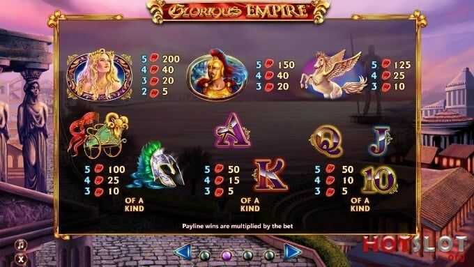 Glorious Empire has 40 paylines that pay in both directions, allowing for an extensive number of winning combinations. This dual-directionality increases the potential for wins, as players can achieve successful combinations from either left to right or right to left, allowing frequent payouts and smaller wins.