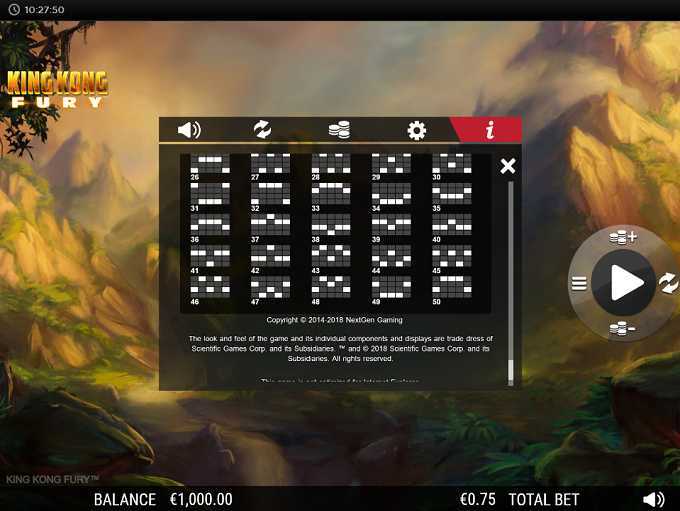 King Kong Fury features a 5-reel, 4-row grid and offers 50 paylines. This structure allows for a multitude of winning combinations, providing players with moderate opportunities to achieve payouts. The relatively high number of paylines increases the potential frequency of wins, although the more structured paylines mean that massive wins might be less common compared to slots with higher variability in winning combinations.