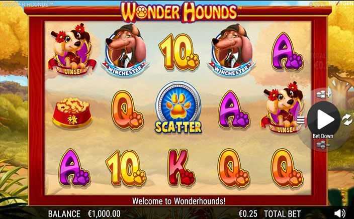 Wonder Hounds employs a total of 25 paylines, which suggests a structured approach to winning combinations. This fixed payline structure means that players will need to land winning symbols on these lines to achieve payouts. Given the high volatility of the game, players can expect infrequent but substantial wins, necessitating a strategic approach to betting.