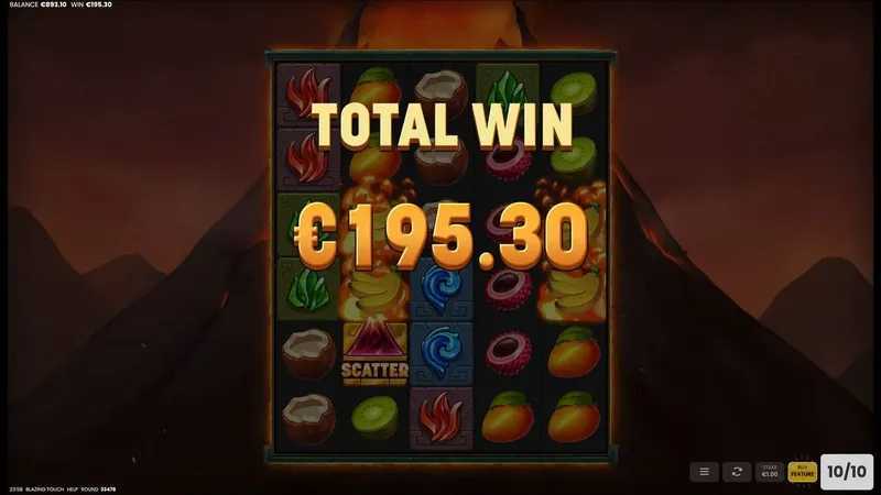 With the medium volatility rating, players can expect a balanced combination of occasional high payouts and more frequent lower wins. This characteristic makes "Blazing Touch" suitable for players who enjoy the thrill of securing decent returns without experiencing prolonged dry streaks.