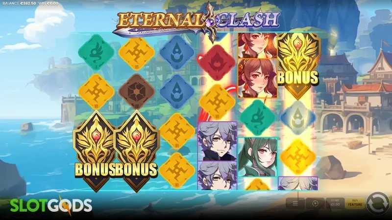 Eternal Clash offers 25 paylines, indicating a relatively traditional structure compared to the increasing trend of games with multiple ways to win. This suggests that while there are multiple routes to winning, they may occur less frequently, especially considering the below-average RTP. Players should anticipate varying win sizes and an approach to potential big wins.