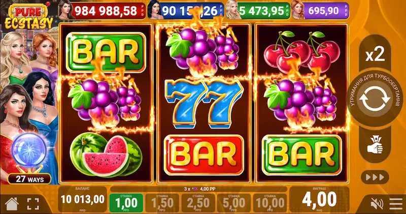 Pure Ecstasy features a 3x3 grid, which provides a limited space for winning combinations compared to larger grids. With 27 paylines, this allows for multiple ways to win in each spin. The setup suggests that while wins can occur, they may be less frequent, translating into a potentially higher variance of results.