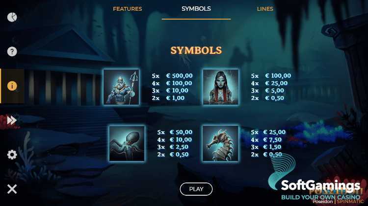 Poseidon has a total of 9 paylines, which is relatively low compared to slots with hundreds or thousands of ways to win. This suggests that the winning combinations may be less frequent, but potentially larger due to the limited number of lines. The lower paylines may mean relying on specific combinations rather than dispersing potential wins across numerous ways.