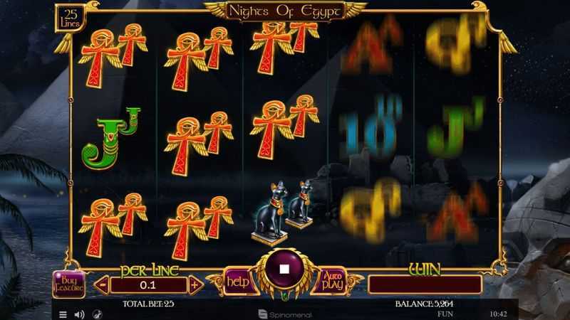 The volatility of Nights of Egypt is labeled as "Unknown," which means that the risk associated with a gaming session cannot be definitively assessed. The presence of 25 fixed paylines may signal moderate volatility, as it allows for regular payouts but can also lead to periods of inactivity or drought regarding wins. Players should keep this in mind and manage their bankroll conservatively.