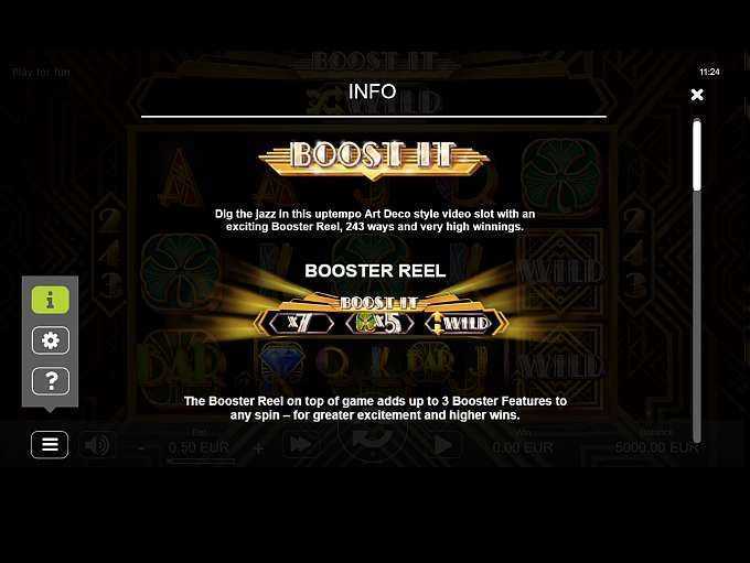 The volatility of "Boost It" is listed as Unknown, which suggests uncertainty regarding win frequency and payout size. Players might encounter periods of both droughts and wins, depending on the game's algorithm. Nonetheless, the 243 paylines offer more opportunities than fixed-line slots, typically indicating moderate volatility.