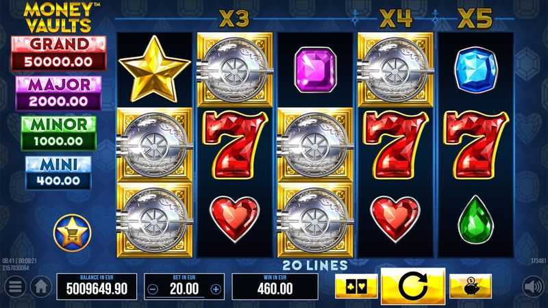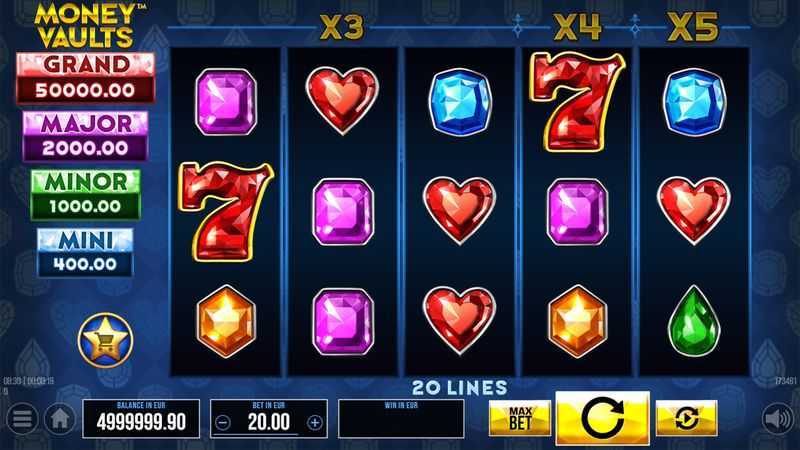 The medium volatility in Money Vaults indicates that players should expect a balanced gameplay experience. This means less risk of large swings and losses compared to high volatility slots, which can drastically impact bankroll. The fixed structure of 20 paylines provides a controllable level of risk and encourages frequent smaller wins, which can help maintain player engagement.